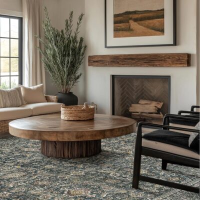Vintage Boho Area Rug 8×10 – Washable Low-Pile Non-Slip Rug for Living Room, Bedroom & Dining Room