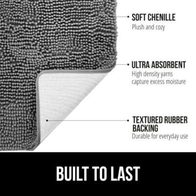 Gorilla Grip Chenille Bath Rug – Ultra Soft, Absorbent, Non-Slip Quick Dry Bathroom Mat (24×17, Grey)