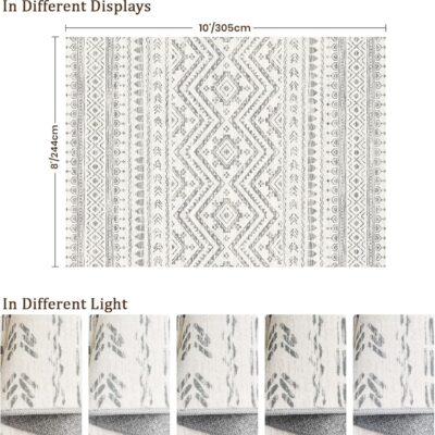 Washable 8×10 Moroccan Boho Rug – Soft, Non-Slip, Stain Resistant Area Carpet for Living Room, Bedroom & Dining Room