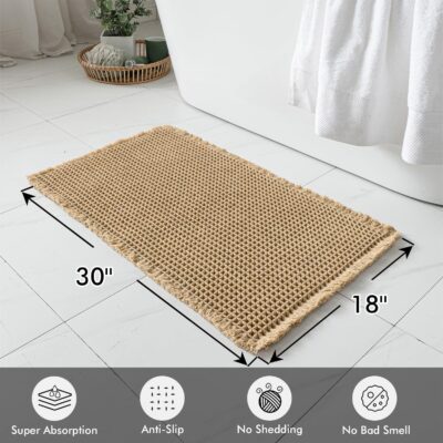 MIULEE 2-Pack Waffle Bath Rugs – Ultra Soft, Super Absorbent Non-Slip Bathroom Mats, Boho Style, 18×30 Inch, Brown