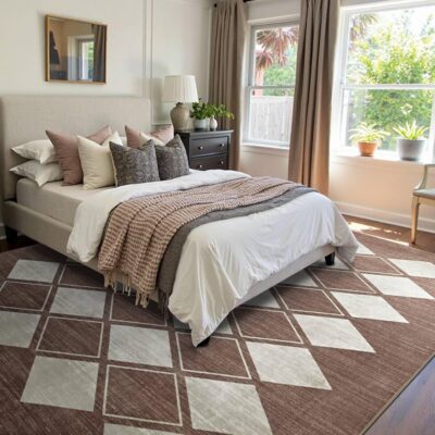 Large 10×14 Farmhouse Area Rug – Beige Brown Low-Pile Washable Living Room & Bedroom Carpet