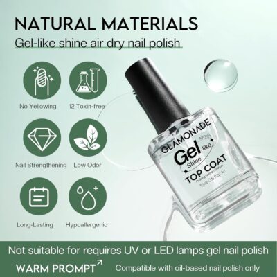 Top Coat Nail Polish Clear: Quick Dry Nail Polish No Chip High Shine Long Lasting Glossy Fast Air Dry Top Coat for Nail Art Manicure Salon Quality
