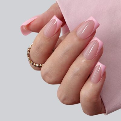 BTArtbox XCOATTIPS Ombre Press On Nails – 150pcs Square Soft Gel Nail Tips in Pink & White Gradient, Long False Nail Extensions for DIY Manicure