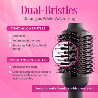 Hairitage Volumizing Blow Dry Brush & Hair Dryer – Ceramic Tourmaline Hot Air Styler for Smooth, Frizz-Free Blowouts